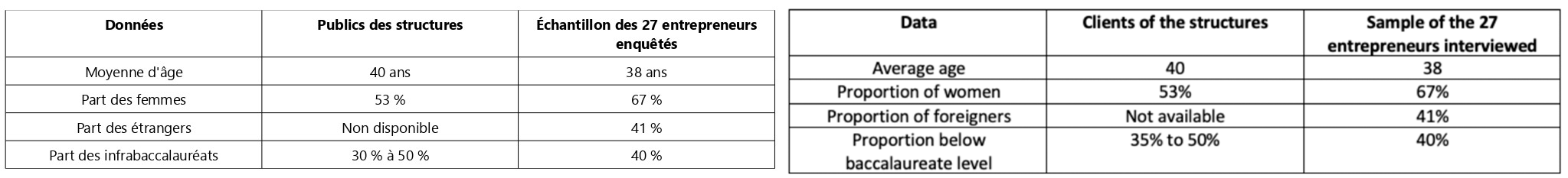 Figure 2: Profiles of clients of the support structures investigated © Loréna Clément