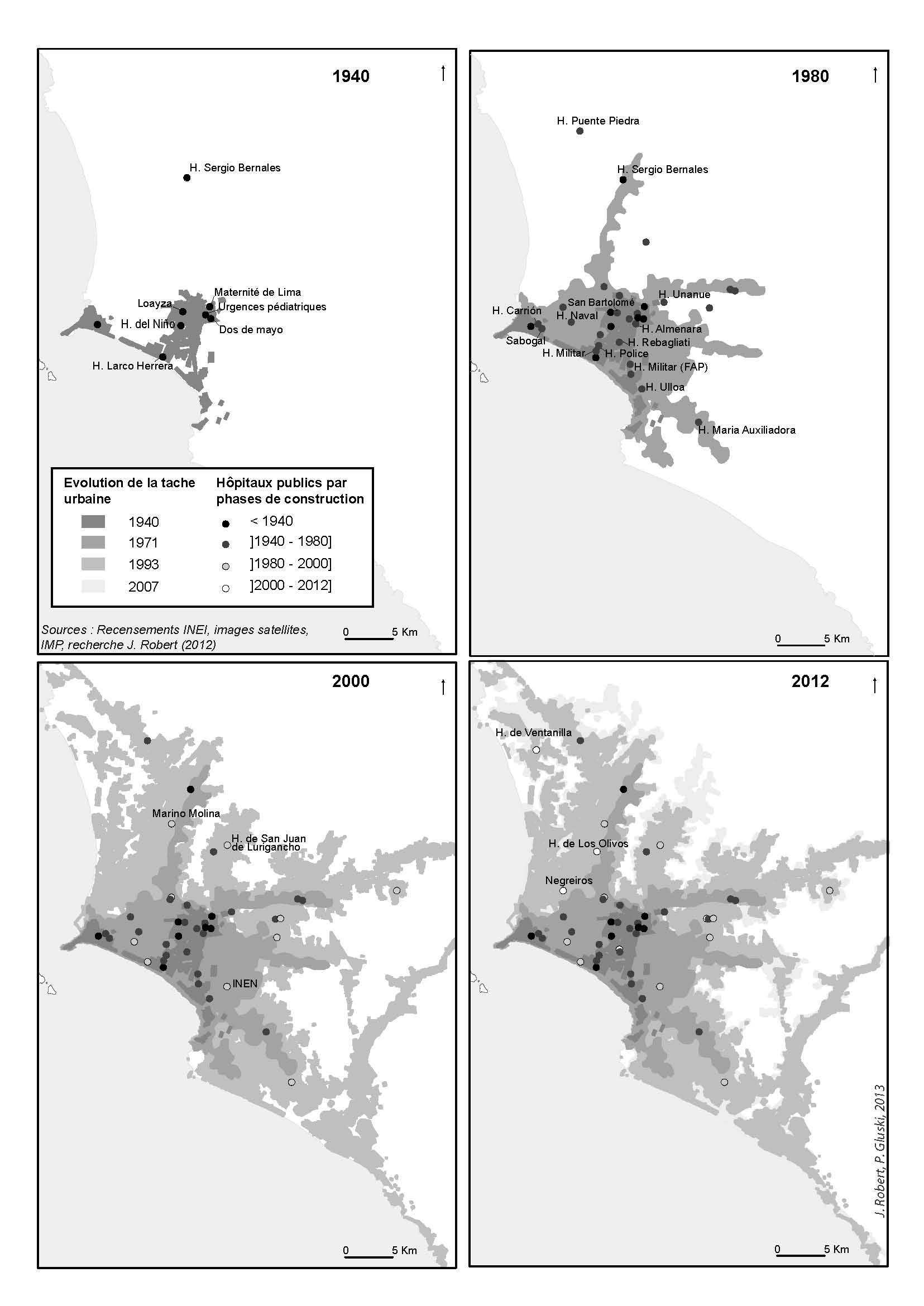 Carte 1 : Implantation des hôpitaux publics et croissance urbaine à Lima