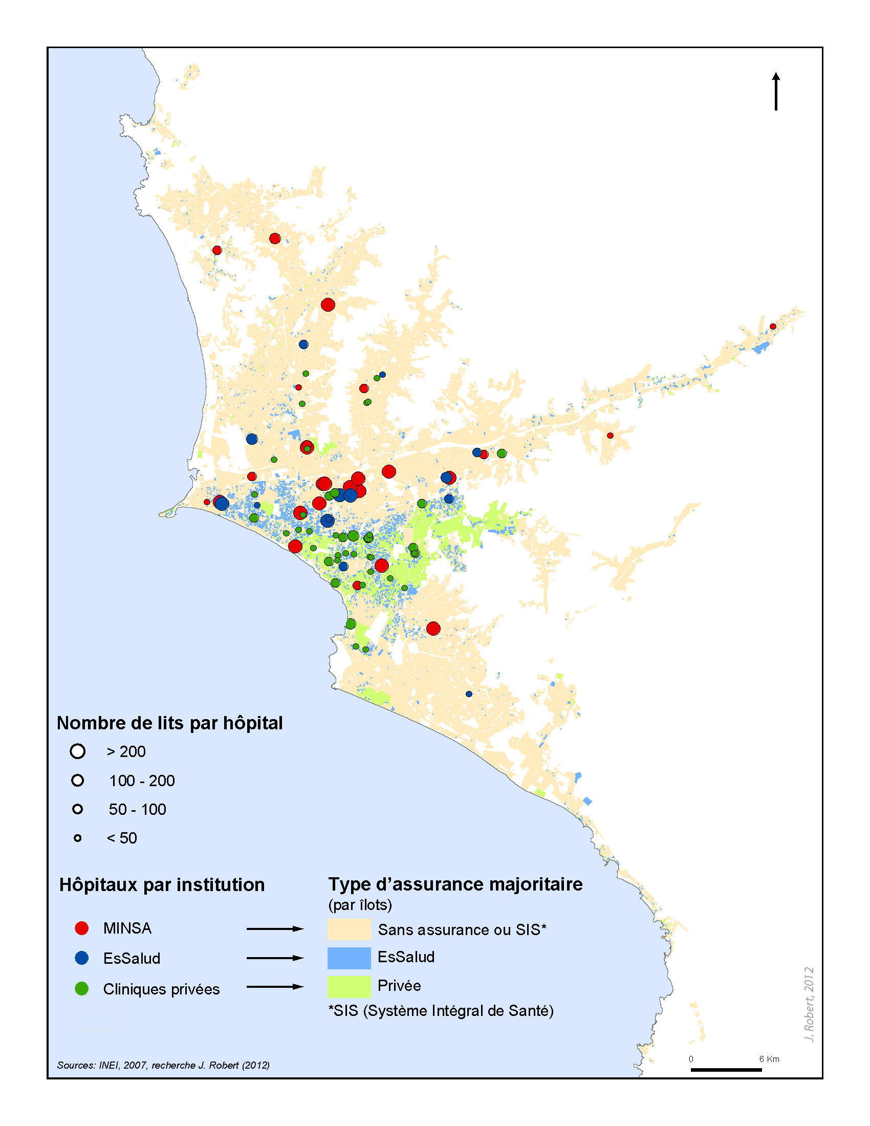 Map 3: Type of Health Insurance and Hospital Structures in Lima / data from the population census of the National Institute of Statistics and Data Processing of Peru (INEI) (2007)
