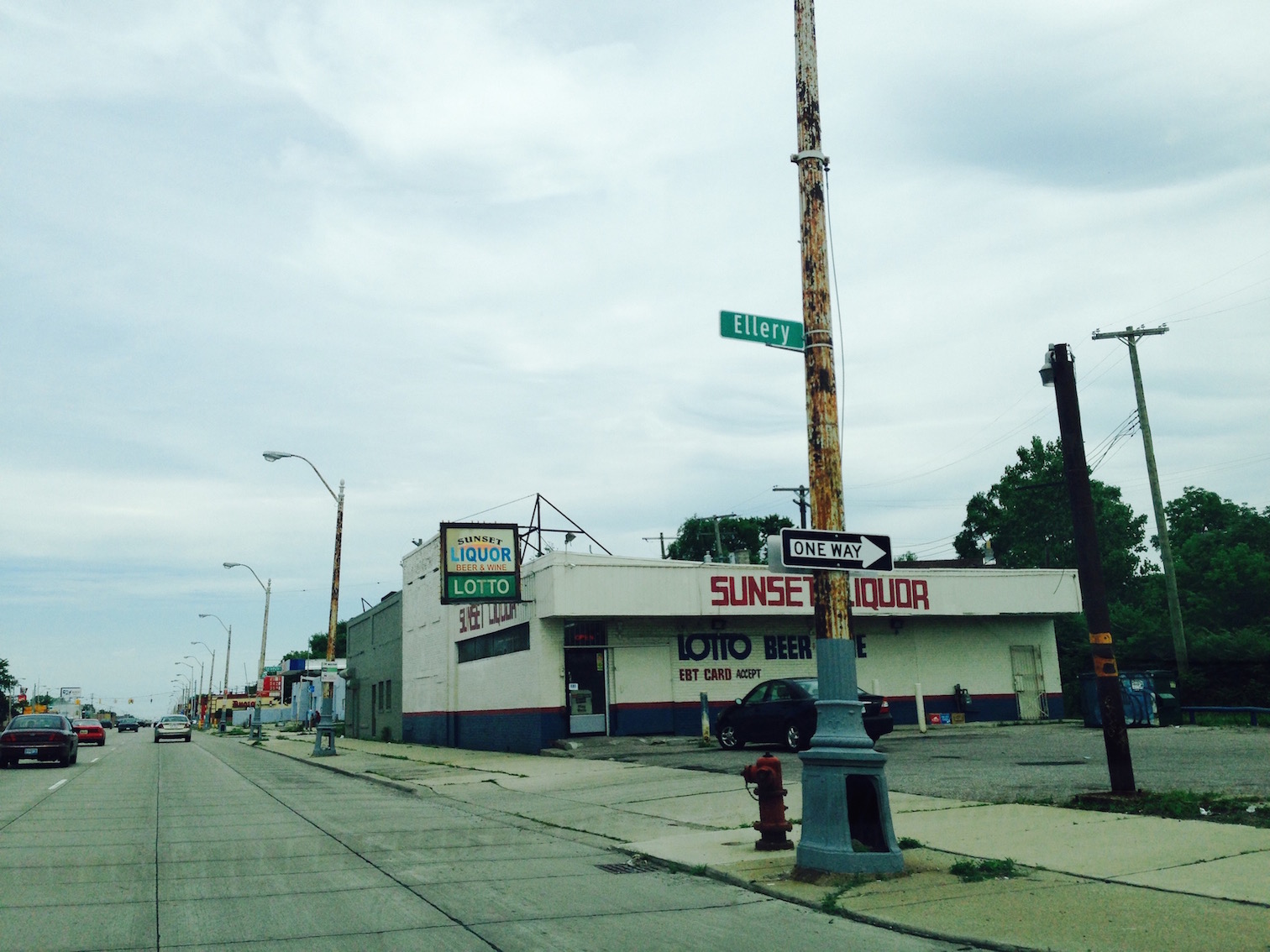 Off Jefferson-Mack, a liquor store at the intersection of Ellery Street and Gratiot Avenue. Source: C. Ruggeri, 2015.