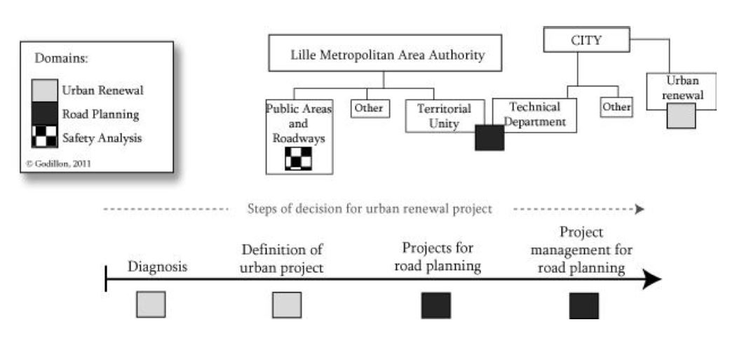 The main problem in the Lille Metropolitan Area Authority is therefore the separation of jurisdictions between the communes and the city itself, with regard to the management of development work for the roadways, traffic, public areas and the living environment: « The separation of jurisdictions related to the management of public areas between the urban community (management of commune-level and community roads) and the communes (policing, public lighting, green areas) tends to isolate road safety within the field of road engineering developed by community departments » (Désiré et al., 2001: 9).