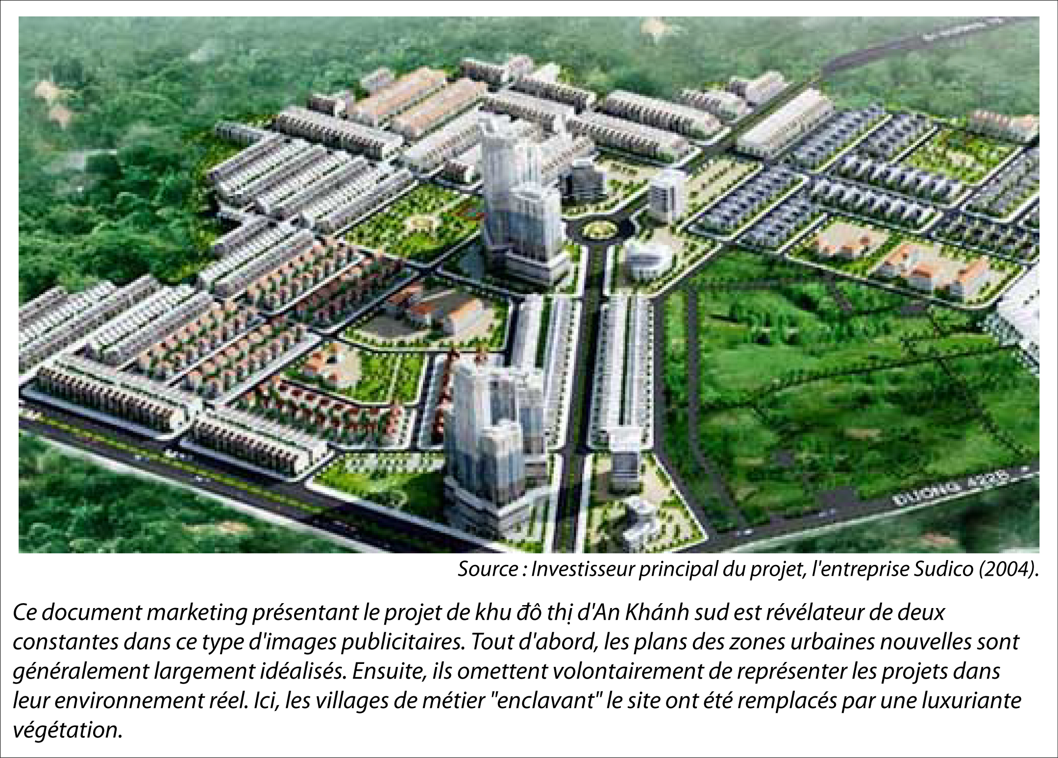 Les opérations d’aménagement conduites par les autorités vietnamiennes répondent un vaste projet – à la fois urbanistique et idéologique – de « modernisation urbaine » (hiện đại hóa) et de « civilisation urbaine » (văn minh đô thị). Cette terminologie, relayée par les campagnes de propagande officielles, constitue l’un des marqueurs de l’entrée du pays dans l'économie de marché depuis les réformes du Renouveau (Schwenkel 2012). La rhétorique d’édification de « l’Homme Nouveau » (Người Mới) a cédé place à celle du « citadin civilisé[5] ». Ce leitmotiv fait référence à la vision intégrée d’un « projet urbain et de civilisation », dans la lignée du modèle singapourien et aujourd’hui du modèle urbain chinois, convoqués comme figures tutélaires dans les schémas directeurs des métropoles en construction. Dans ces modèles, la ville moderne est d’abord celle du foncier maîtrisé, du zonage fonctionnel et de l’adhésion des citadins à un ordre social partagé (Comité populaire de Hà Nội et Posco-Perkinks Eastman-Jina 2010, Comité populaire de Hồ Chí Minh Ville et Nikken Sekkei 2007).