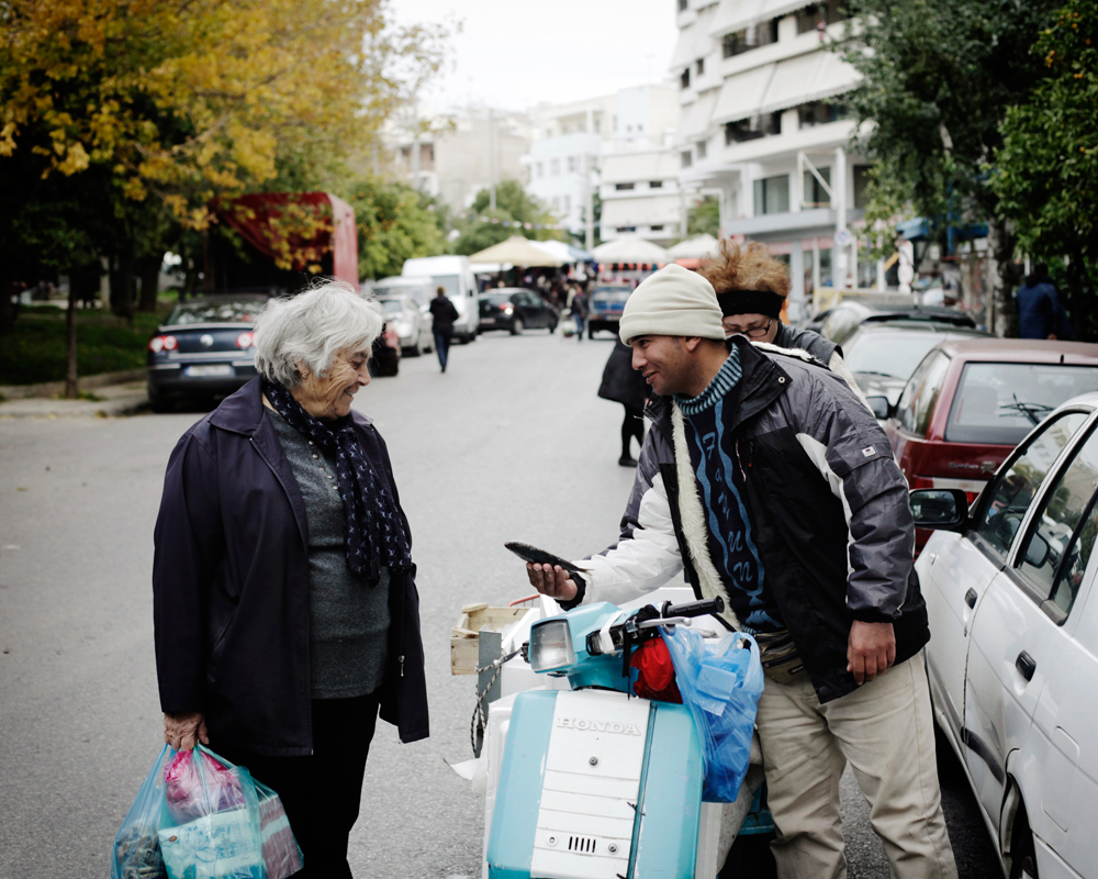 The solidarity shown to the Egyptian sellers by their Greek customers is not a one-way street: the Egyptians also offer credit to their elderly customers, whose pensions fall with every budget cut. In this neighbourhood of former fishermen and sailors, having no fish to eat is a lack that is met by the role the immigrants play. Solidarity comes all the more easily in that estrangement from authority is a feature of their different histories. For the Egyptians, illegal activities are a habit they acquired before coming to Greece. Many were involved in maritime smuggling before crossing the Mediterranean. In Athens, drawing on effective community networks, they quickly learn other illegal practices, such as bribery, bypassing procedures, or even falsifying documents, in order to overcome the bureaucratic obstacles to settlement.