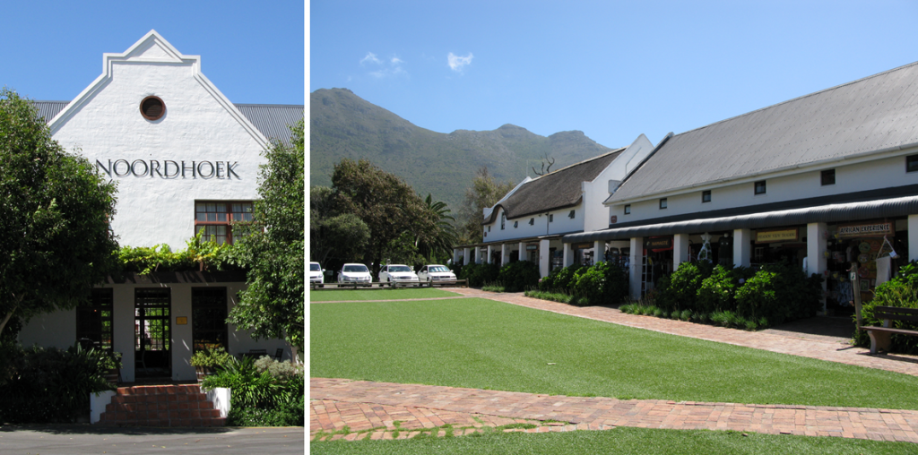 Photo n°2: Cape Dutch-inspired architecture and artificial lawns in Noordhoek Farm Village. (Photos by the authors, 2013)