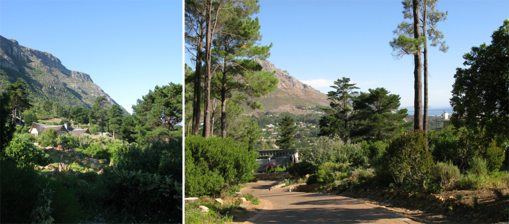 Photo n°3 : Allées du Ruyteplaats Estate sur les hauteurs d’Hout Bay, entre résidentiel haut de gamme et jardin botanique (clichés des auteurs, 2013)