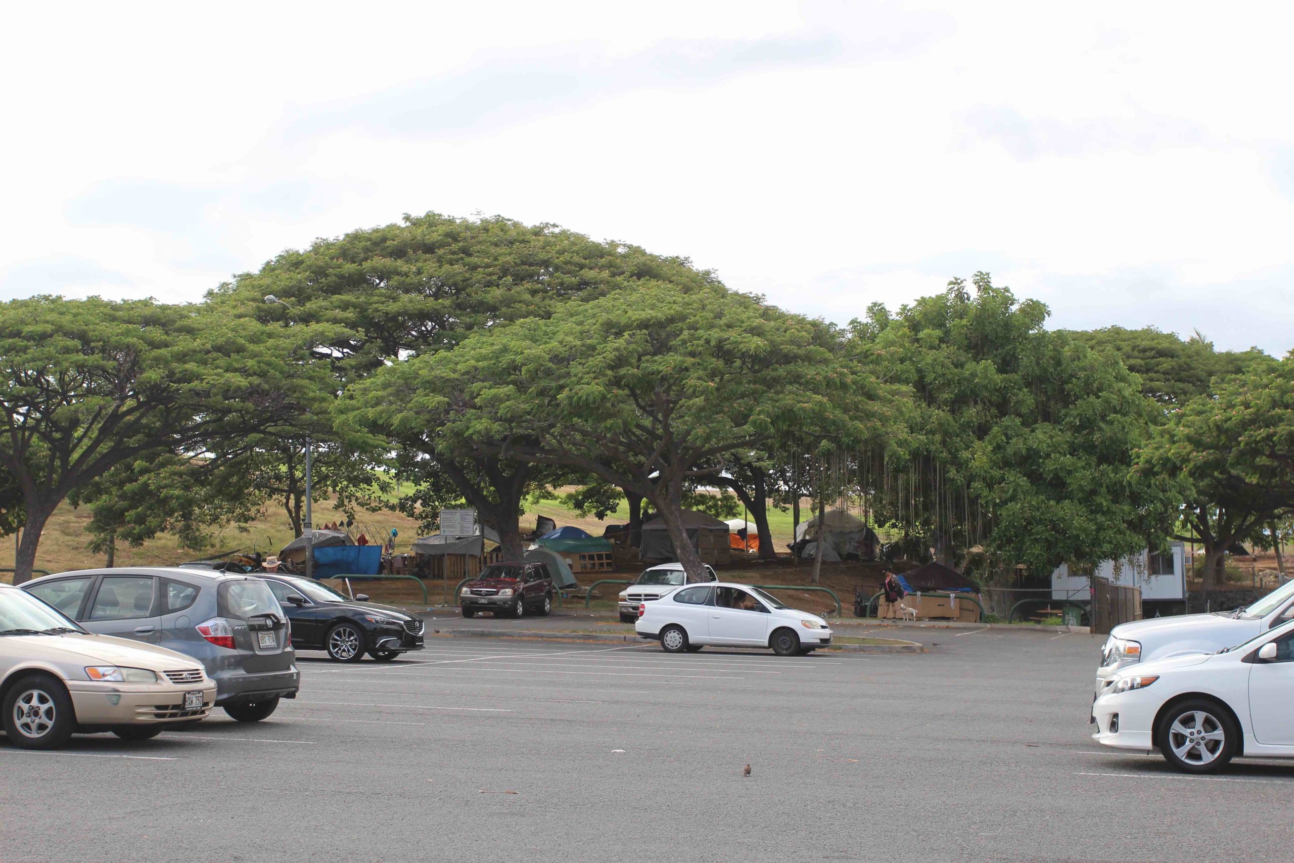 Les défis actuels d’Hawai‘i et surtout d’Honolulu sont non seulement causés par le secteur du tourisme, car les îles sont considérées comme un paradis sur terre, entraînant ainsi un tourisme de masse, mais aussi par des problèmes de logement, à cause de l’espace limité de l’île d’O‘ahu. Après la Seconde Guerre mondiale, les investissements immobiliers et la spéculation ont stimulé la croissance démographique, notamment avec l’arrivée de nouveaux·elles résident·e·s en provenance du continent américain et des pays d’Asie (Spencer, 2015 ; Minerbi, 1994). En raison de la surface de la ville et de sa population croissante, le coût élevé de la vie oblige les résident·e·s à cumuler deux emplois ou à se retrouver sans abri (Spencer, 2015). Les logements abordables pour les résident·e·s à faibles revenus sont en concurrence avec les gratte-ciel de luxe construits pour les retraité·e·s californien·ne·s, new-yorkais·es, japonais·es et autres personnes fortunées qui cherchent à déménager. En 2015, la population de sans-abri d’Hawaï (dont la majorité vit à Honolulu) a atteint 7 620 personnes, ce qui en fait l’État avec la plus forte population de sans-abri par habitant aux États-Unis (Nagourney, 2016 ; Spencer, 2015, Minerbi, 1994 ; voir figure 2).