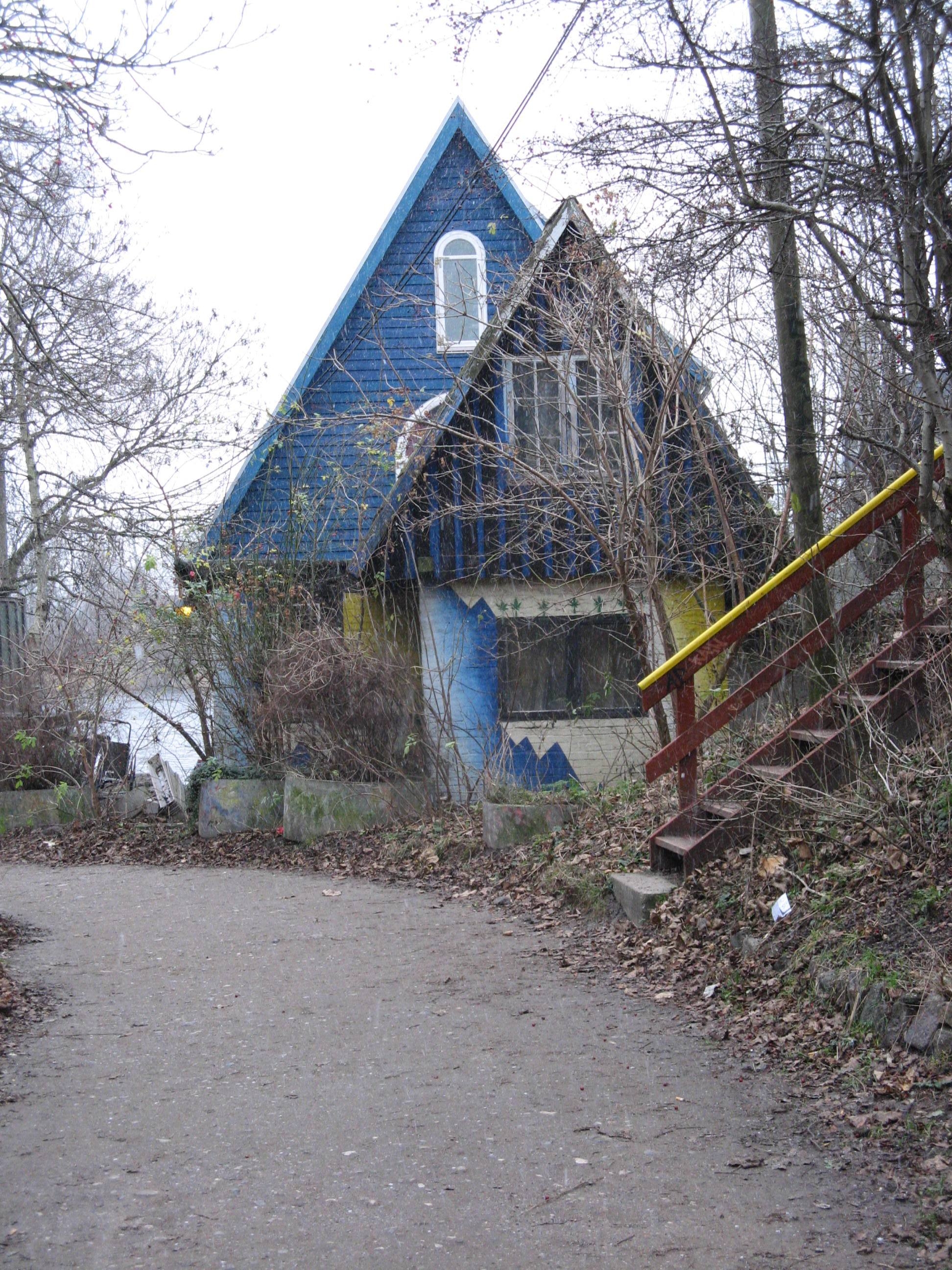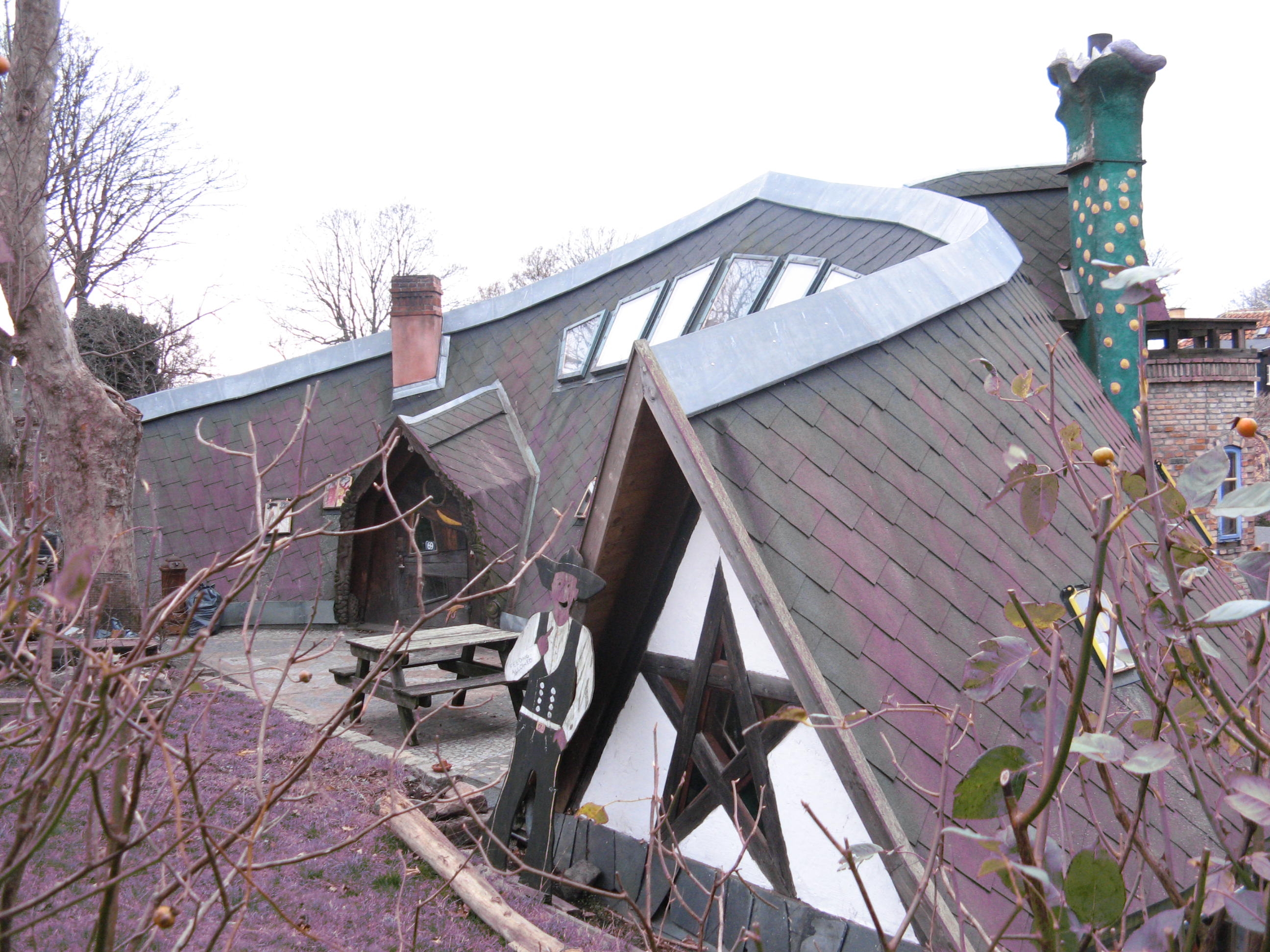 [21] Bananhuset, the Banana House, was built by ‘naverne’, serving as the Northern Europe clubhouse for these journeymen builders. As with most houses built by the community in Christiania, as opposed to those that have been refurbished, Bananhuset is constructed mainly from materials that have been reclaimed at relatively little or even no cost. Wood is the principal material used in Bananhuset.