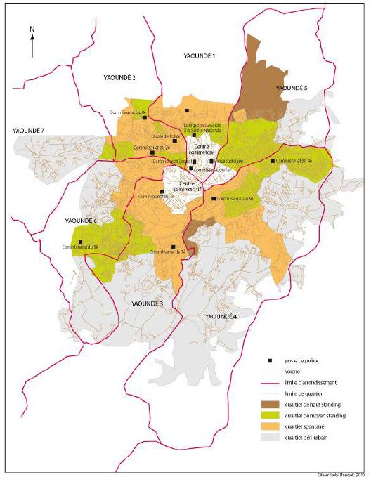 In the field of security studies in Sub-Saharan Africa, research in the social sciences have been focusing mainly on countries belonging to the old urban tradition, i.e. marked a priori by a strong, durable and increasing crime rate. In this regard, Kenya and particularly South Africa and Nigeria are over-represented in analyses on insecurity, security and the police force (Perouse de Montclos: 1997; Dirsuweit: 2002; Fourchard, Albert: 2003; Anderson, Killingray: 1992). Researchers have also been analysing the exportation and appropriation of mainly anglophone security models founded on the notion of resident participation (Benit Gbaffou: 2006). We felt it became necessary to envisage the question of security in another country such as Cameroon, where the majority of the population is francophone[2] and where various co-operation, multilateral and bilateral agreements have been signed with France in particular. More specifically, we will discuss the situation in Yaounde, the Cameroon capital, where political concerns underlie public security issues.
