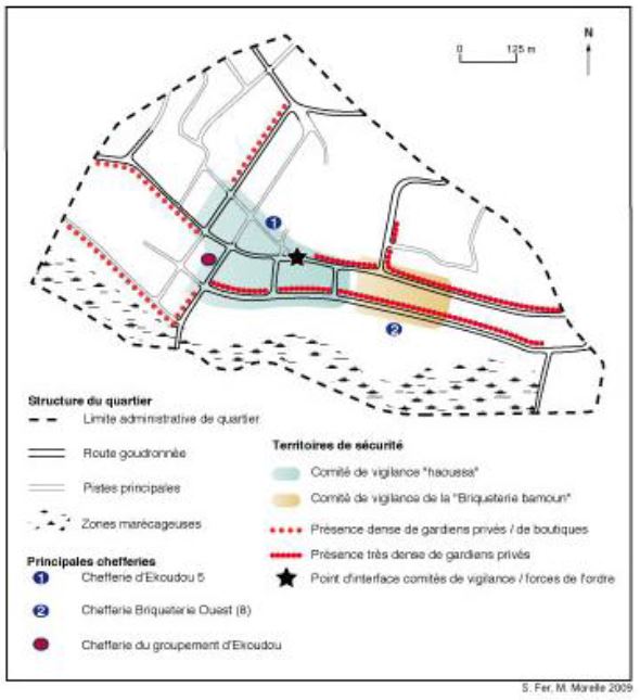 In 2009, two vigilance committees operated in La Brique: the Haoussa Committee and the Bamoun Committee, both depending on various founding district chiefs.