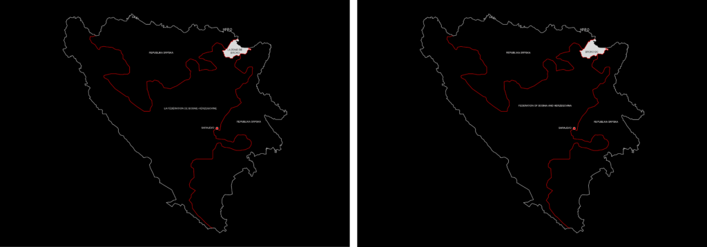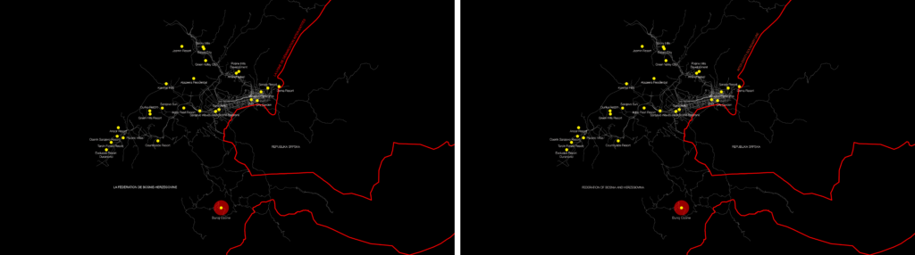 Since the 20th of November 1995, an invisible line has run across Bosnian and Herzegovinian territory, cutting the country into two almost equal portions. The meandering array of joined dots, a final product of the years of spectacular violence of war eventually subdued by political means, gave birth to a new spatial and political order under the watchful eye of the international community. The war of aggression launched upon Bosnia and Herzegovina (B&H) in 1992 quickly escalated into one of the most brutal episodes in the history of then crumbling state of Yugoslavia. The proliferation of violence, which led to a number of feeble international diplomatic attempts at producing peace, finally came to an end with the signing of the General Framework Agreement for Peace in Bosnia and Herzegovina, also known as the Dayton Peace Agreement (DPA).