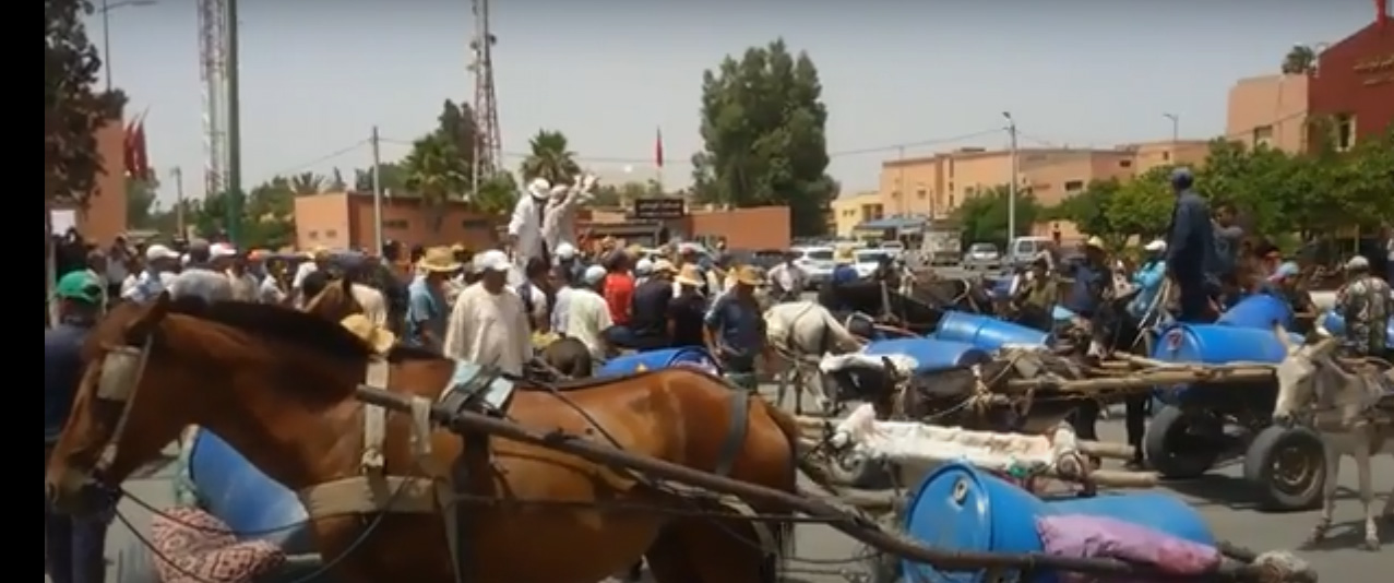 Figure 4: Inhabitants of El Youssoufia’s surrounding villages protesting the depletion of water tables in the region (source: https://www.youtube.com/watch?v=f321UaKEzeg)