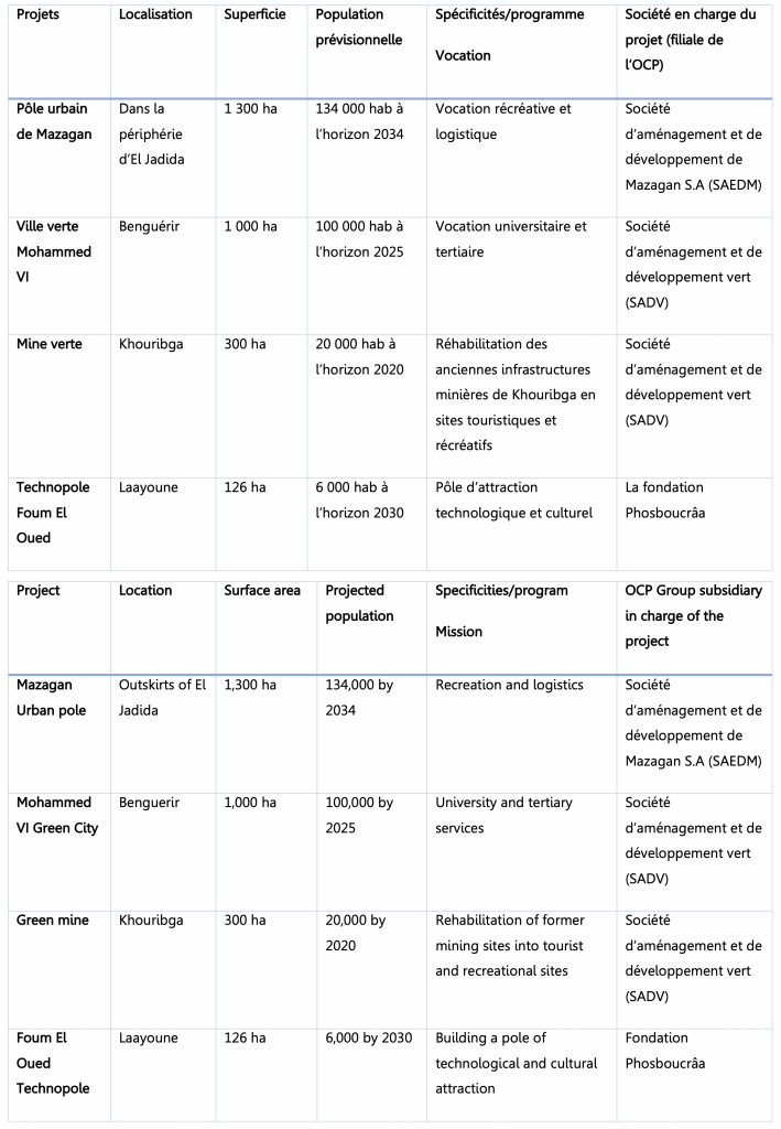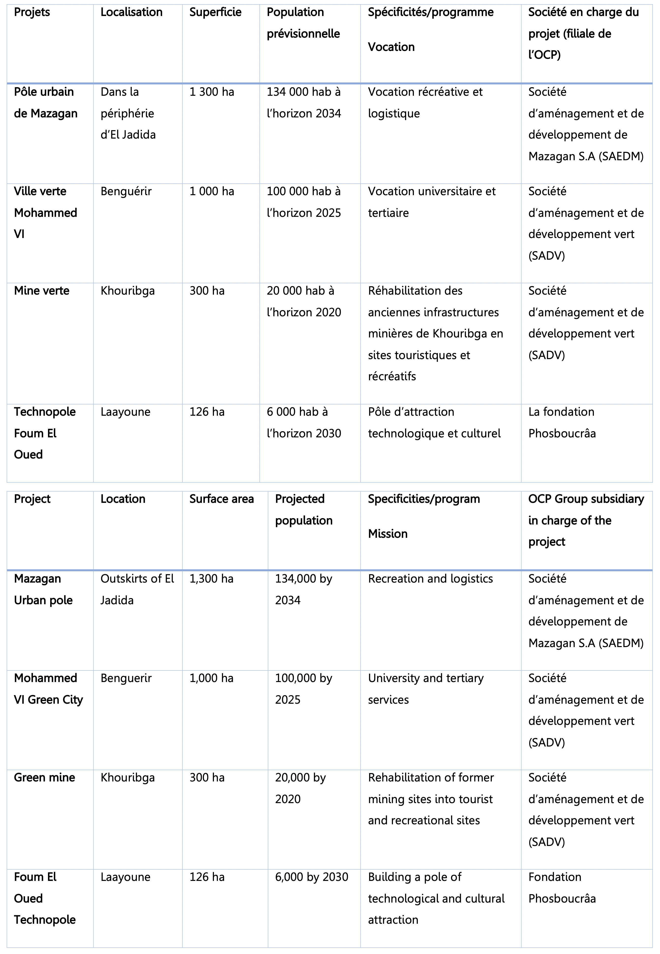 Table 1: Main “ecological » projects launched by the OCP Group (source: OCP reports and project presentation brochures).