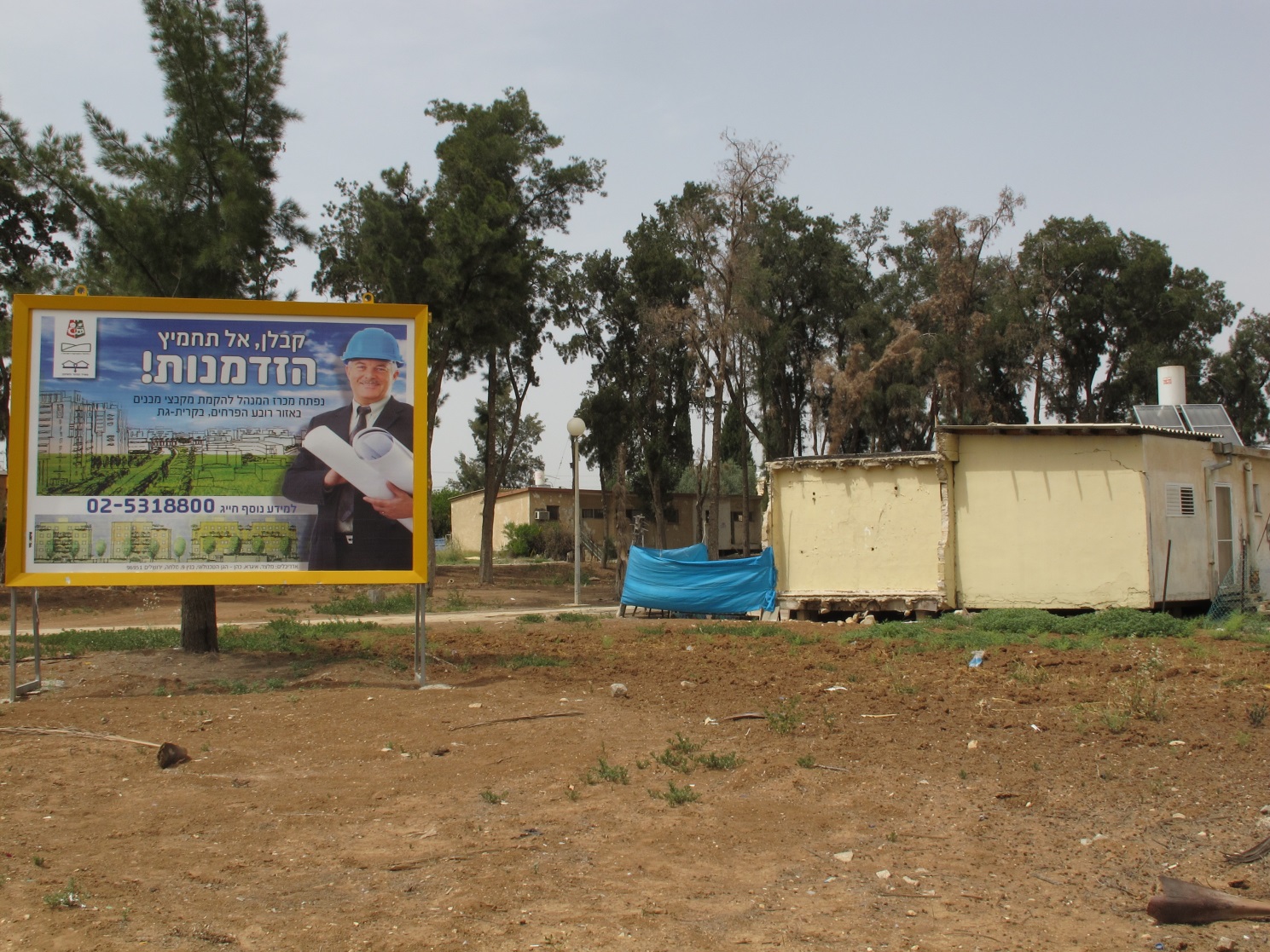 A quelques mètres du centre « d'absorption » où vivent entassés de nombreux Ethiopiens, un nouveau projet immobilier entend attirer les classes moyennes, locales et non locales. L'idée est de (re)donner une image positive du coeur de la ville nouvelle, secteur le plus déprimé économiquement de la petite agglomération, les nouveaux développements urbains de standing un peu supérieur s'effectuant tous à sa périphérie. Cela est pour partie dû à la promotion immobilière locale, celle-ci souhaitant séduire les employés des nouvelles entreprises récemment installées dans la zone industrielle à quelques kilomètres de Kiryat Gat. Celle-ci était initialement dévolue aux transformations des produits agricoles et à l'industrie traditionnelle, mais ces activités en nette perte de vitesse (l'usine textile de Polgat ferme dans les années 1990) ont été complétées/remplacées par des implantations d'entreprises informatiques, domaine dans lequel Israël excelle, mais qui, hormis pour les emplois peu qualifiés, s'insère mal dans une économie urbaine d'une "ville de développement" comme Kiryat Gat. Avec une aide de plus de 500 millions de dollars du gouvernement israélien, une première usine Intel ouvre en 1999 (fabrication du Pentium 4), suivie d'une seconde en 2006/2008. Ces industries high tech ne s'articulent à la ville que par une consommation en passant. Malgré la présence de ces entreprises prestigieuses (Intel, HP) et leur indéniable apport financier au budget communal, les endémiques problèmes socio-économiques de la localité (Aymard, Benko 1998) ne sont pas enrayés, le taux de chômage à Kiryat Gat reste l'un des plus élevés d'Israël, ces firmes ne correspondant pas au marché local du travail. L'unique point d'intersection est le centre commercial en bordure de la ville du côté de la zone industrielle. La co-présence des salariés du high tech et des habitants de la "ville de développement" n'y fait qu'accentuer le sentiment de pauvreté chez ces derniers. La promotion immobilière locale ne parvient qu'à attirer certaines couches de populations internes en ascension sociale, l'écrasante majorité des personnels des entreprises de haute technologie évitant soigneusement de résider à Kiryat Gat. La bonne accessibilité autoroutière (en particulier du fait de la nouvelle autoroute n°6) de la zone d'activité économique contribue paradoxalement à desservir la "ville de développement". Celle-ci reste comme figée vis-à-vis de mobilités dont elle peine à bénéficier.
