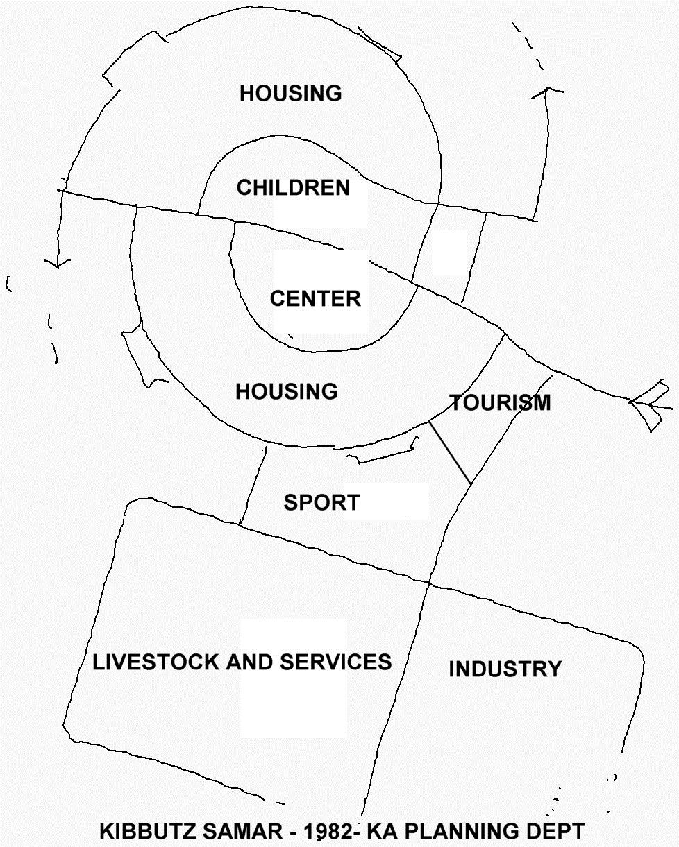 As a planning concept that became necessary starting in the 1930s, the kibbutz, “neither city nor village” based on Tabenkin’s (1887-1971) formula, is an urban planning alternative to the capitalist city similar to Howard’s garden cities, or town planning in the first decade after the revolution in the U.S.S.R. It is a “mini-utopia” structured to blend collective ownership and self-management, community on a human scale and urban modernity (Kahana, 2011).